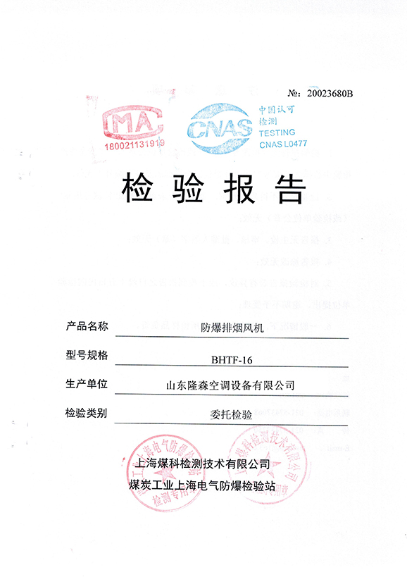 • 防爆排煙風(fēng)機合格證