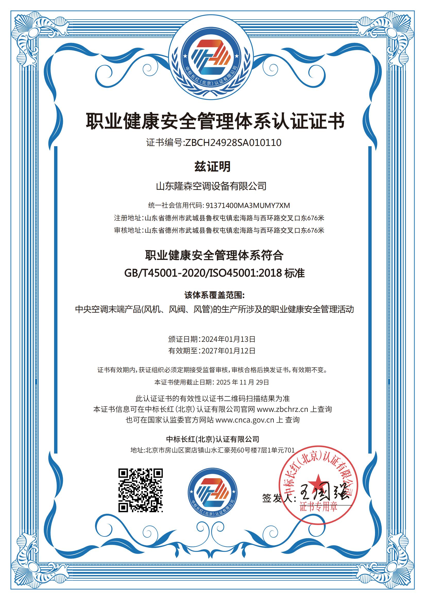• 職業(yè)健康安全管理體系認證證書